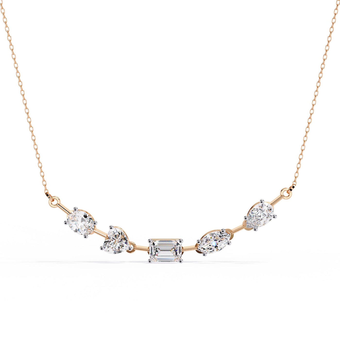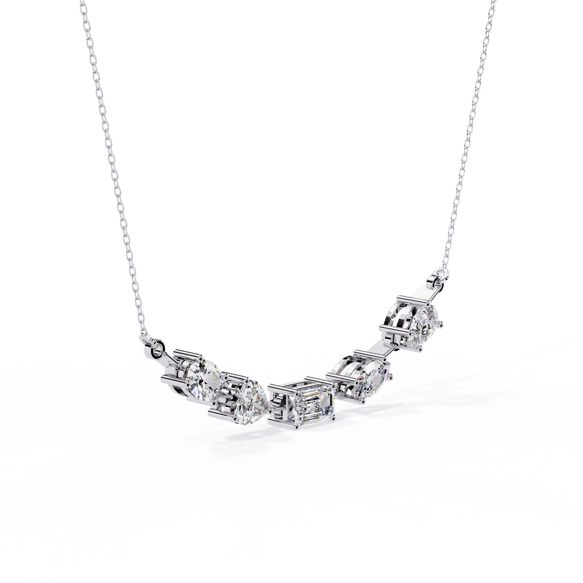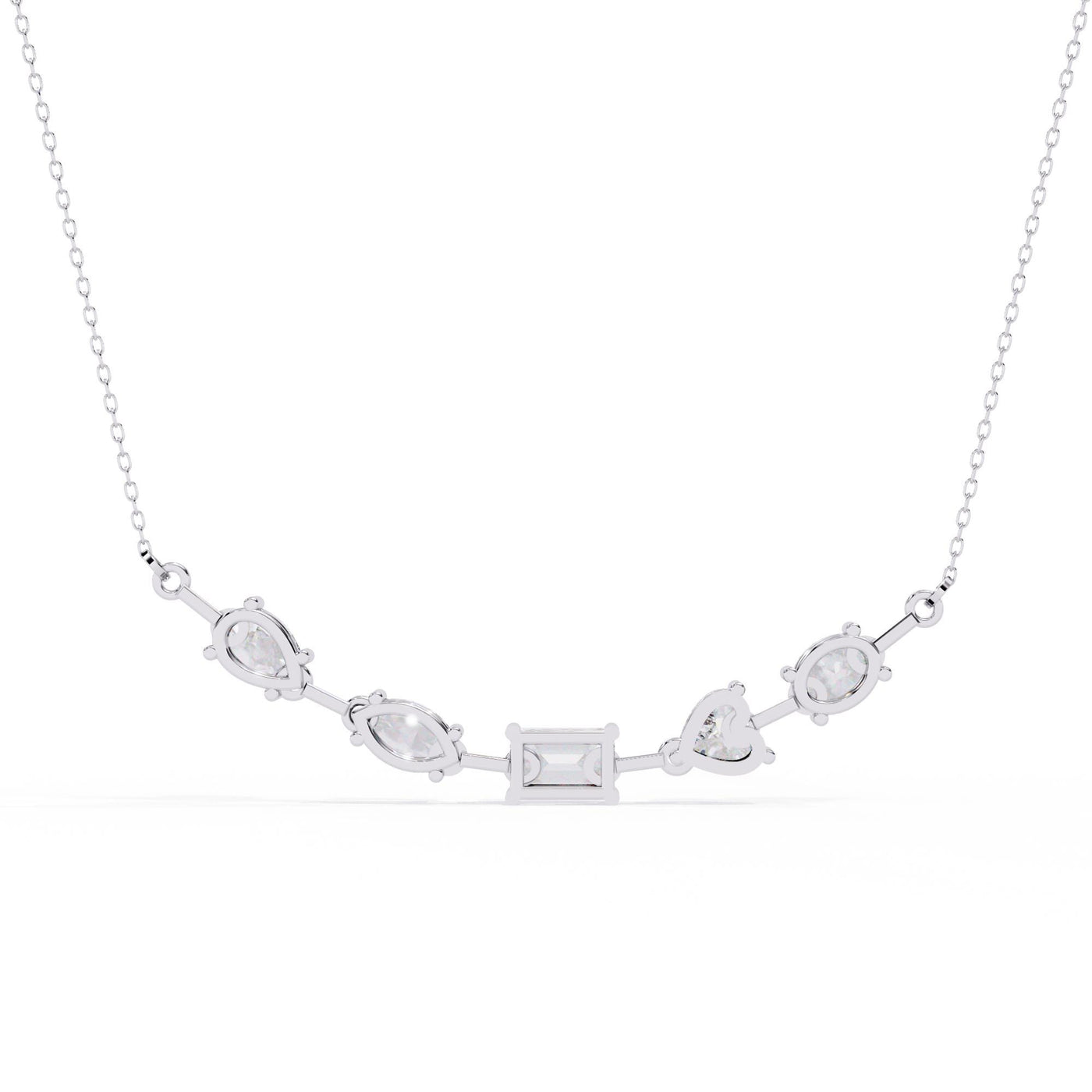 Moissanite Cluster Necklace For Women 925 Sterling Silver 18 inch Link Chain Minimalist Dainty Handmade Multi Shape Bar Pendant Necklace - Sterling Silver + CZ