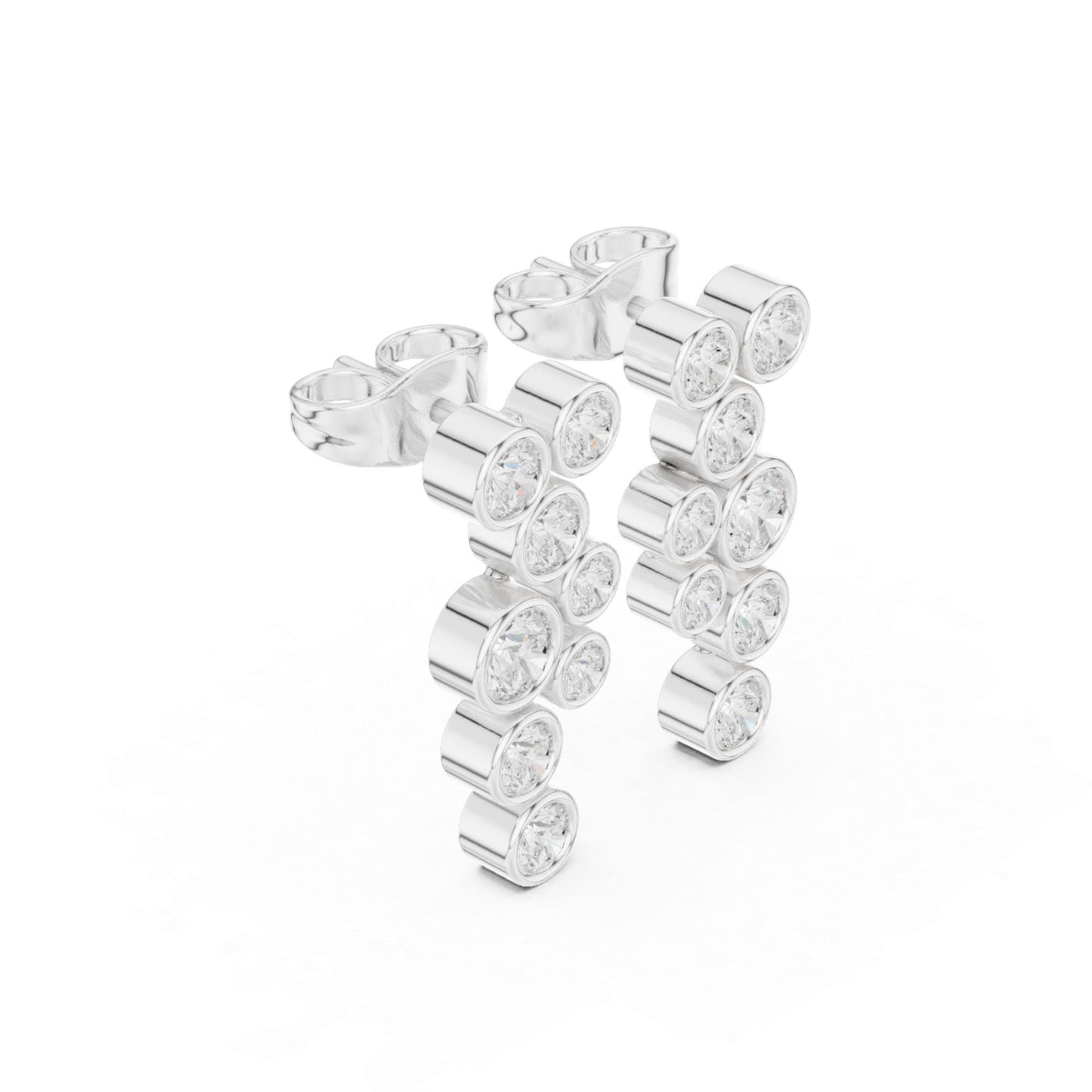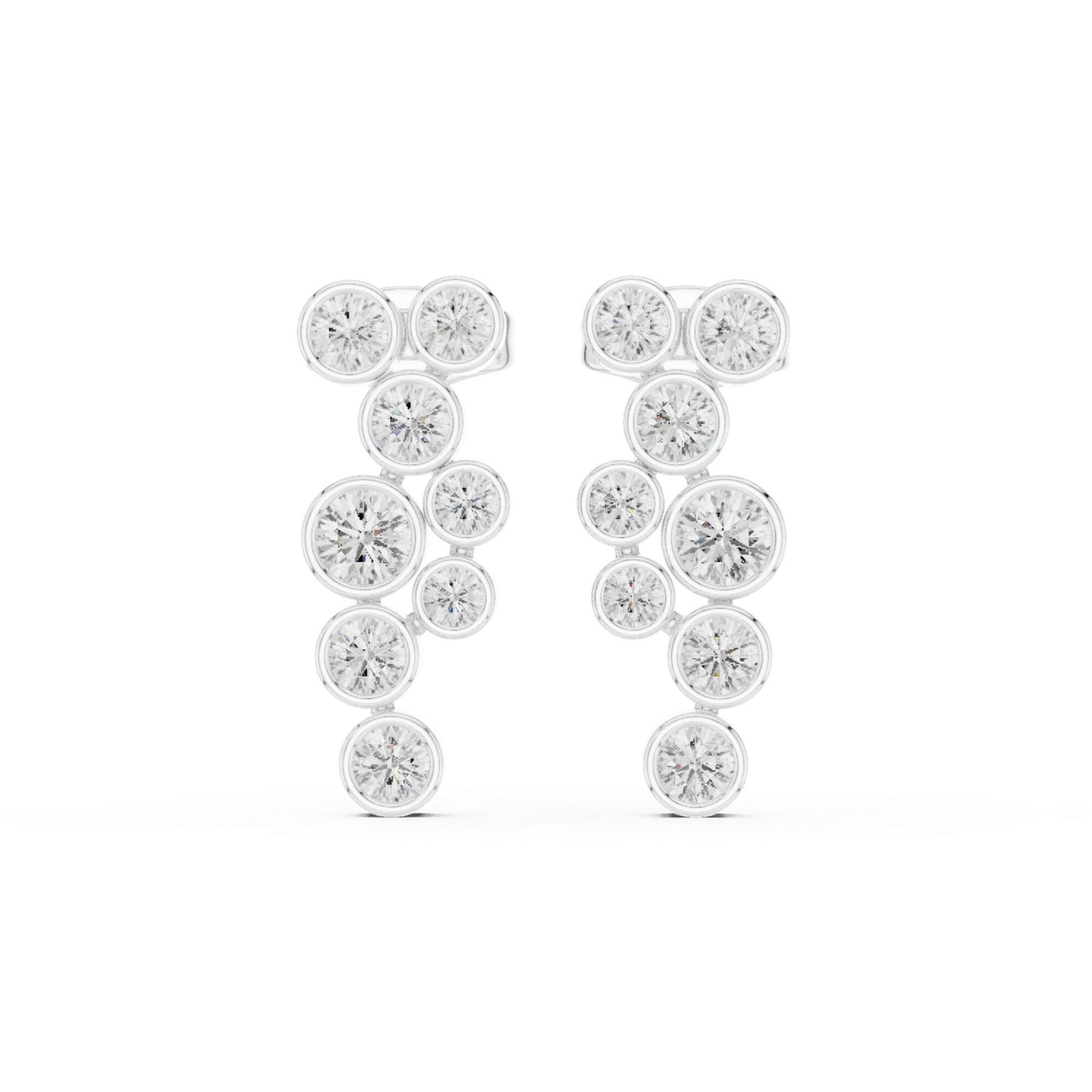Moissanite Dangle Earrings For Women 925 Sterling Silver Pushback Minimalist Dainty Cluster Bezel Set Long Bridal Anniversary Gift For Her - Silver Color + CZ