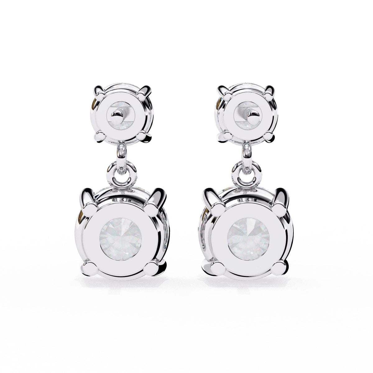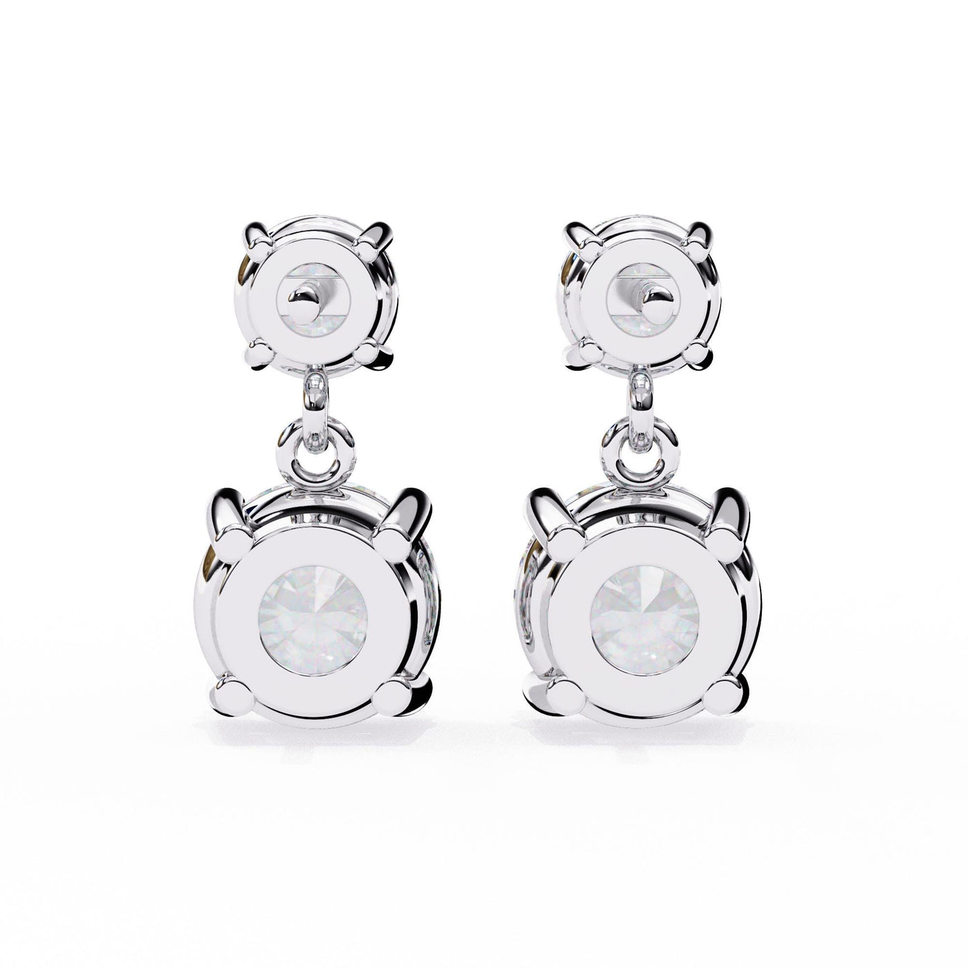 Two Moissanite Dangle Earrings For Women 925 Sterling Silver Push Back Minimalist Dainty Drop Trendy Classic Stud Anniversary Gift For Her - Silver Color + CZ