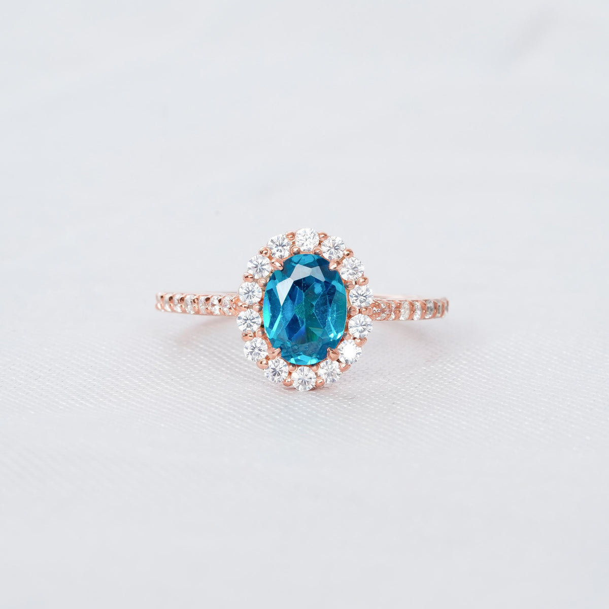 Blue Topaz Ring Set For Women 925 Sterling Silver Halo London Blue Topaz Engagement Bridal 1.5c Ring Matching Moissanite Dainty Wedding Band