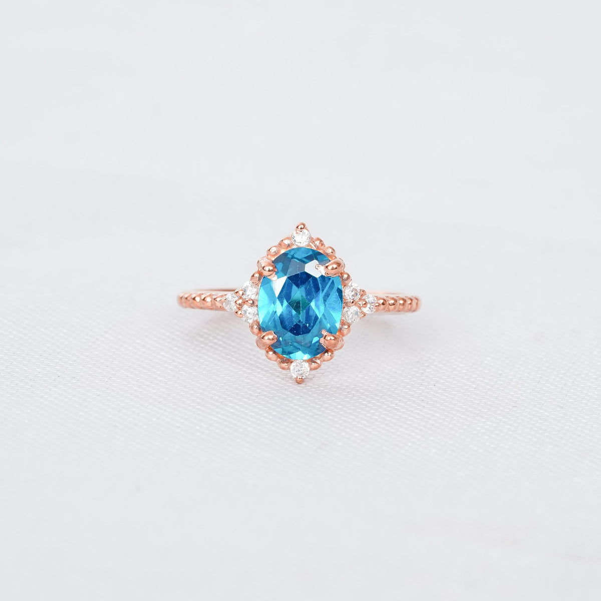 London Blue Topaz Engagement Ring Set Matching Moissanite Crown Wedding Band For Women 925 Sterling Silver Halo Beaded Band Bridal Ring - 925 Sterling Silver / 3