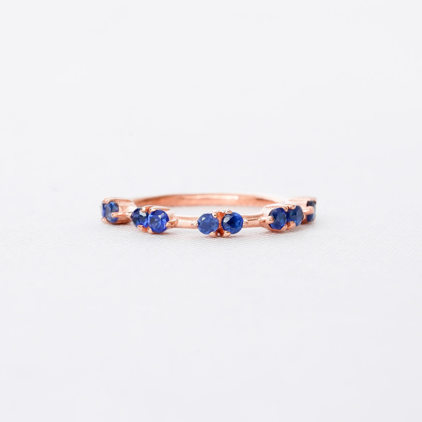 Moissanite Engagement Ring Set For Women 925 Sterling Silver Three Stone Bridal ArtDeco 1.5c Ring Matching Blue Sapphire Dainty Wedding Band - 925 Sterling Silver / 3