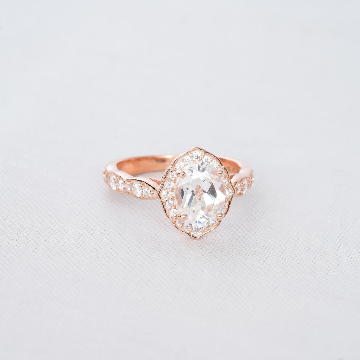 Moissanite Ring Set For Women 925 Sterling Silver Milgrain Bridal Oval 2ct Art Deco Engagement Ring Matching Moissanite Chevron Wedding Band