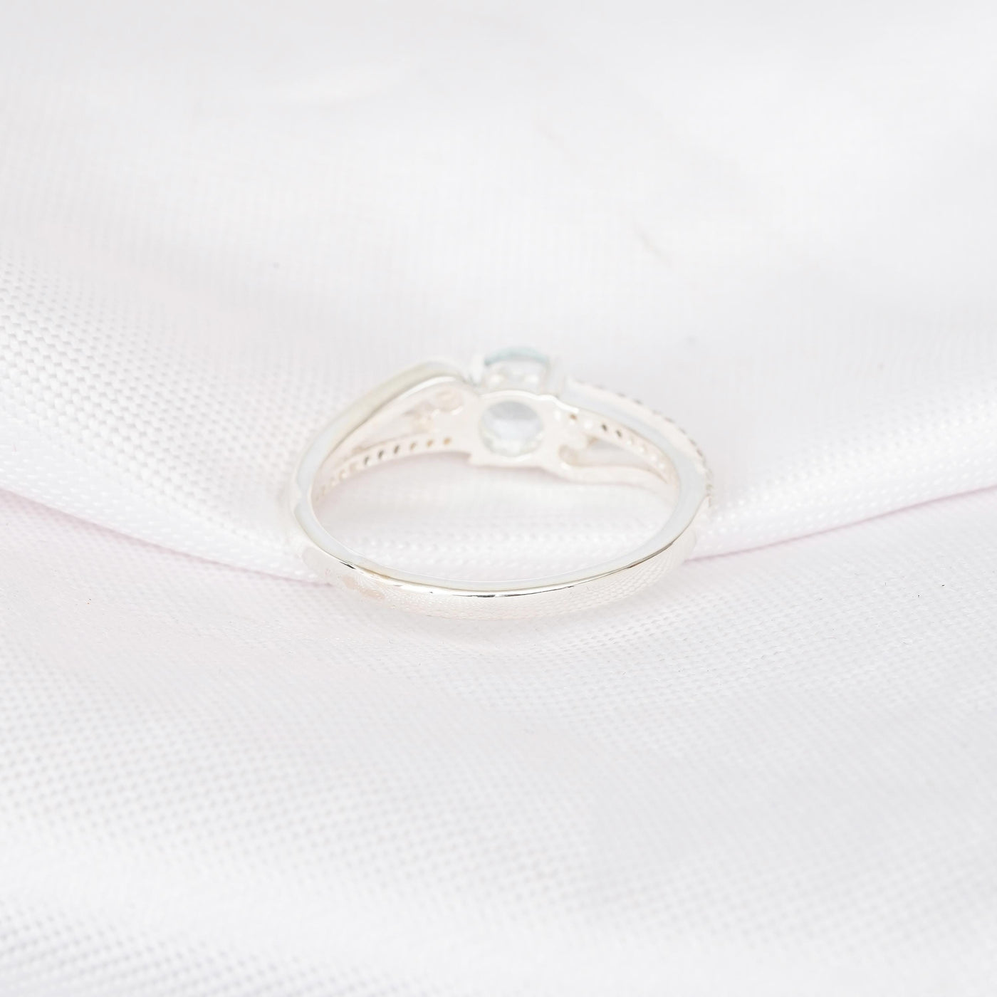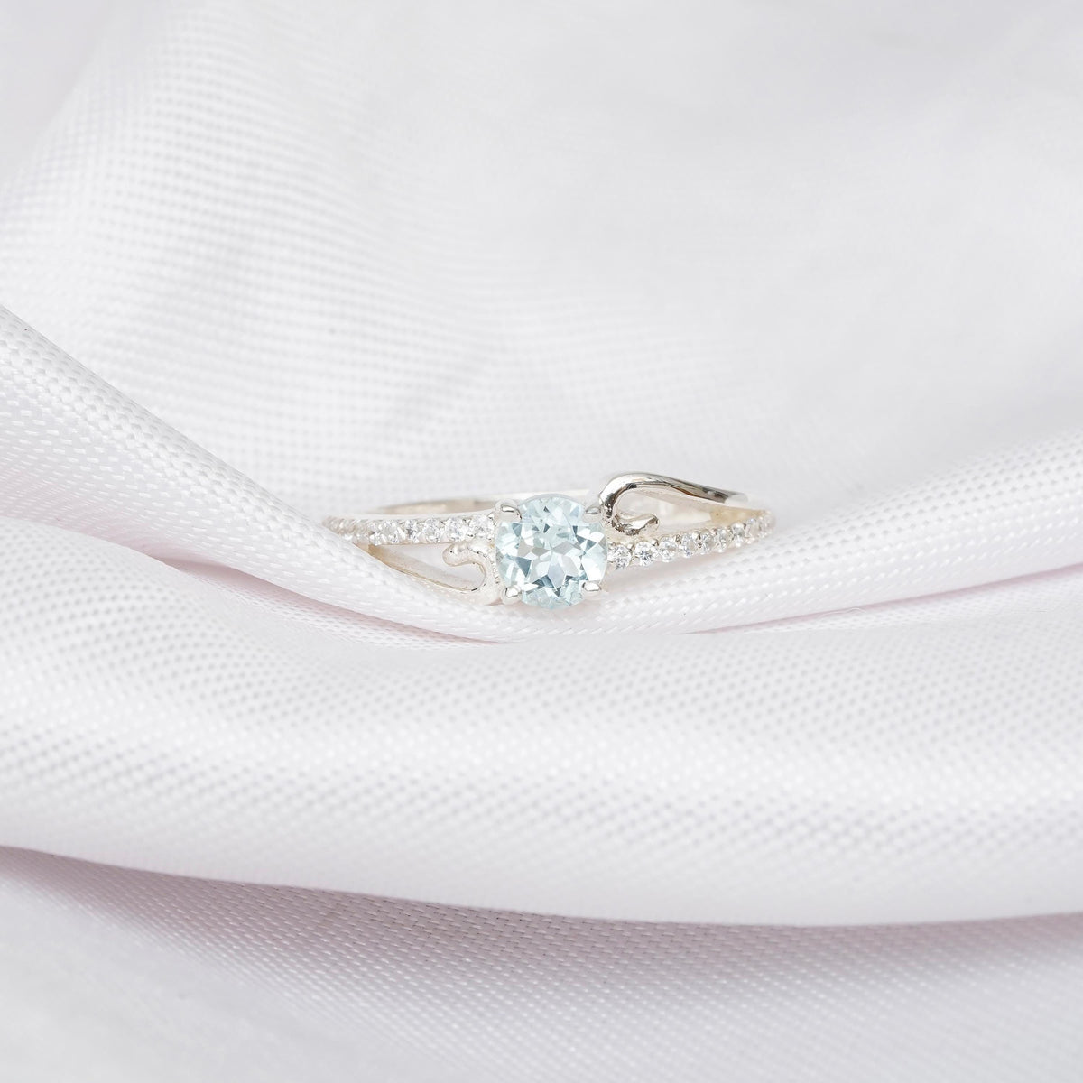 Aquamarine Engagement Ring 925 Sterling Silver Round Aquamarine Wedding Ring For Women Proposal Classic Prong Solitaire Halo Infinity Ring - 3 1/4 / 925 Sterling Silver