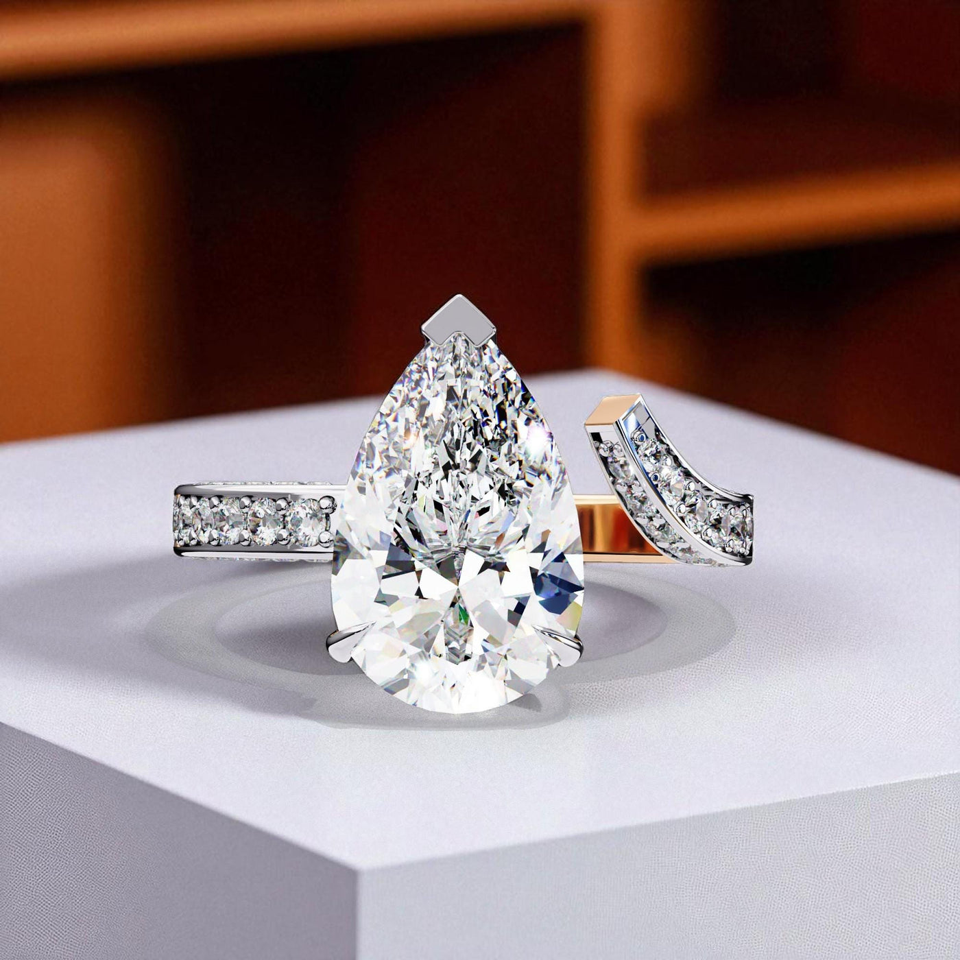Pear Moissanite Engagement Ring Open Unique Wedding Bridal Bypass Eternity Band 3ct Art Deco Prong Set Proposal Anniversary Ring For Women