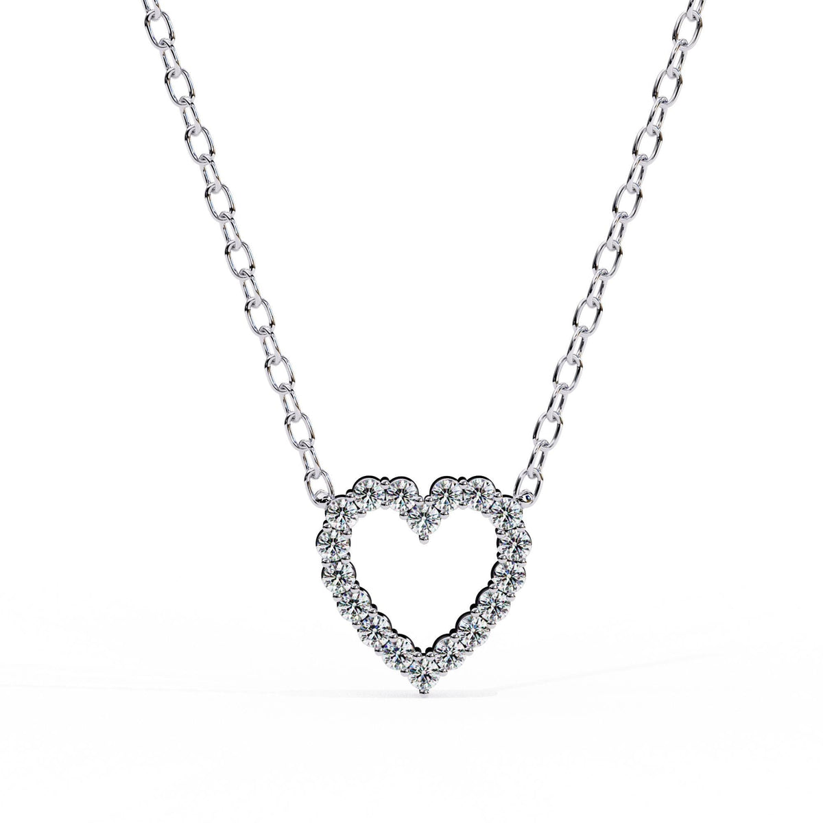 Heart Shaped Pendant Necklace For Women 925 Sterling Silver Pave Set Moissanite 18" Link Chain Minimalist Dainty Necklace Love Gift For Her - 925 Sterling Silver