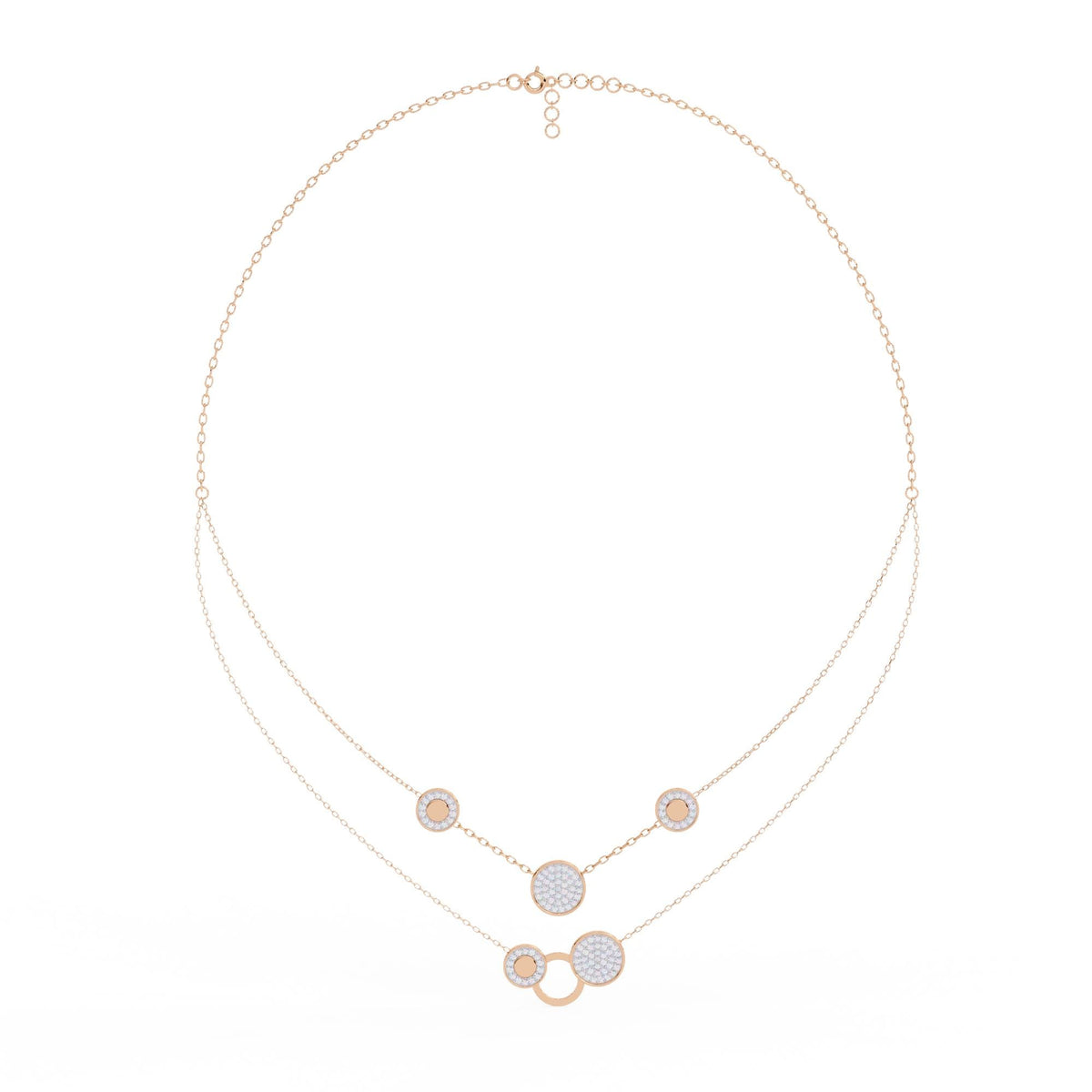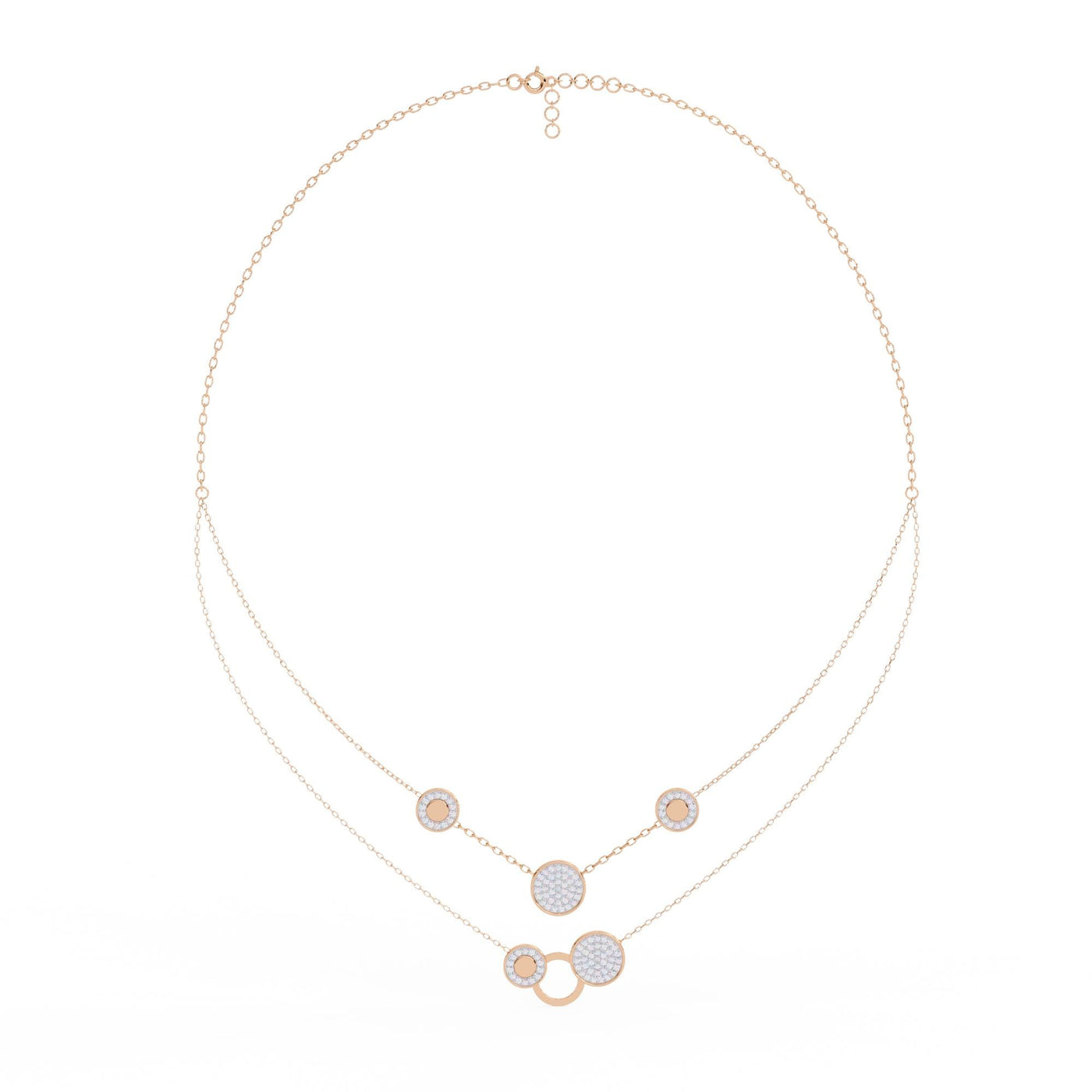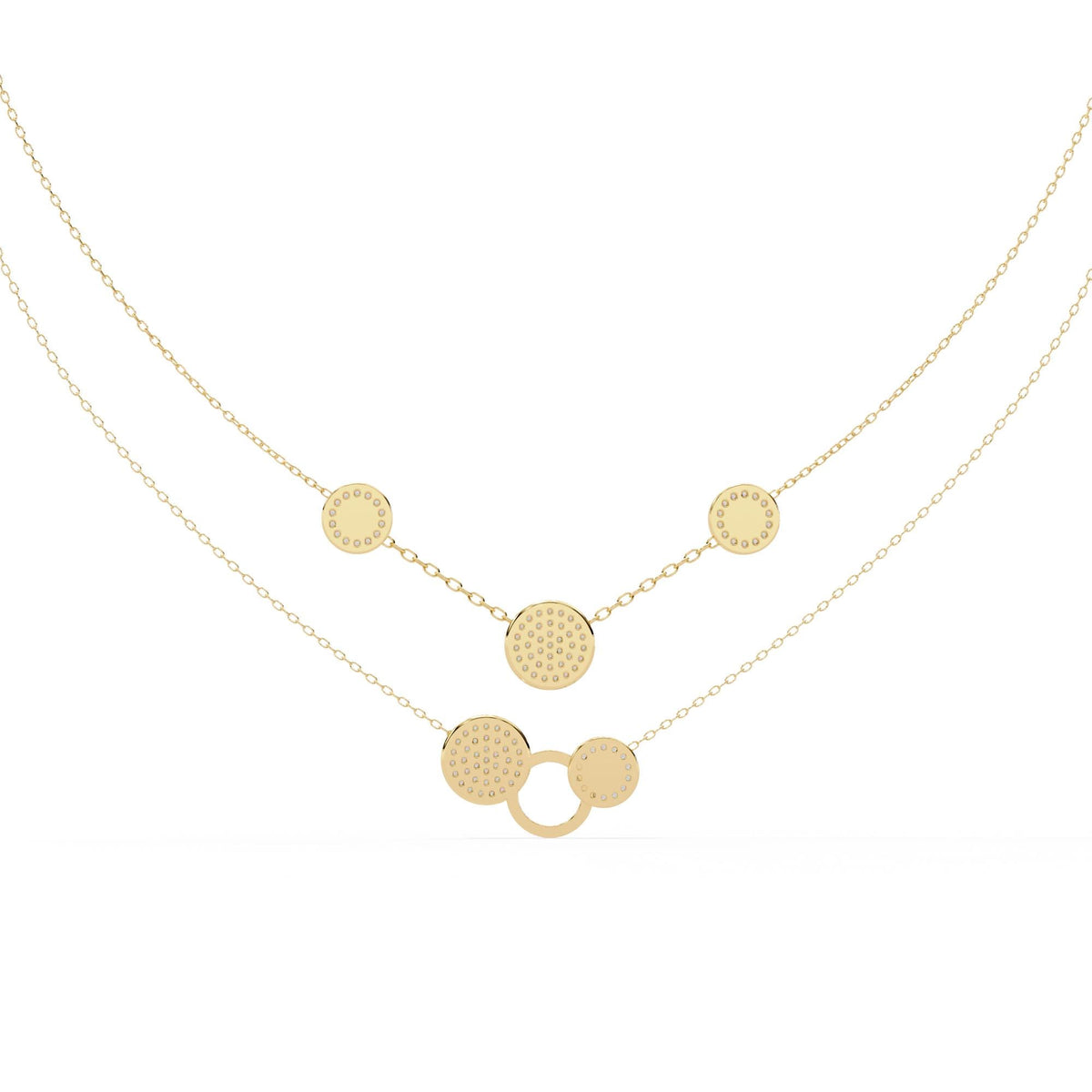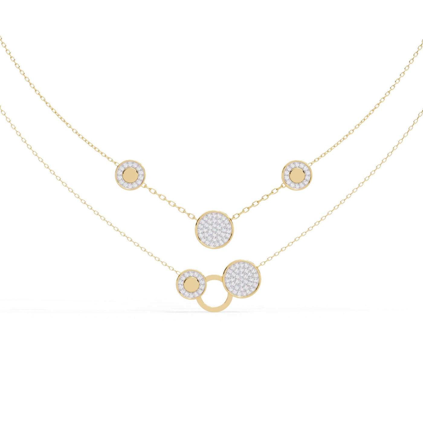 Layered Necklace For Women 925 Sterling Silver Double Chains Dainty Minimalist Bridal Layering Circle Pendant Anniversary Gift For Her - Sterling Silver + CZ