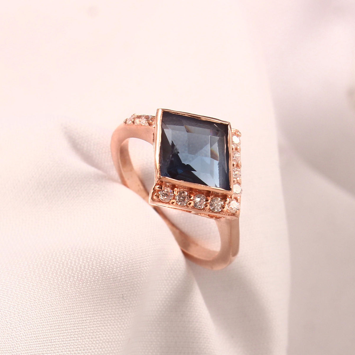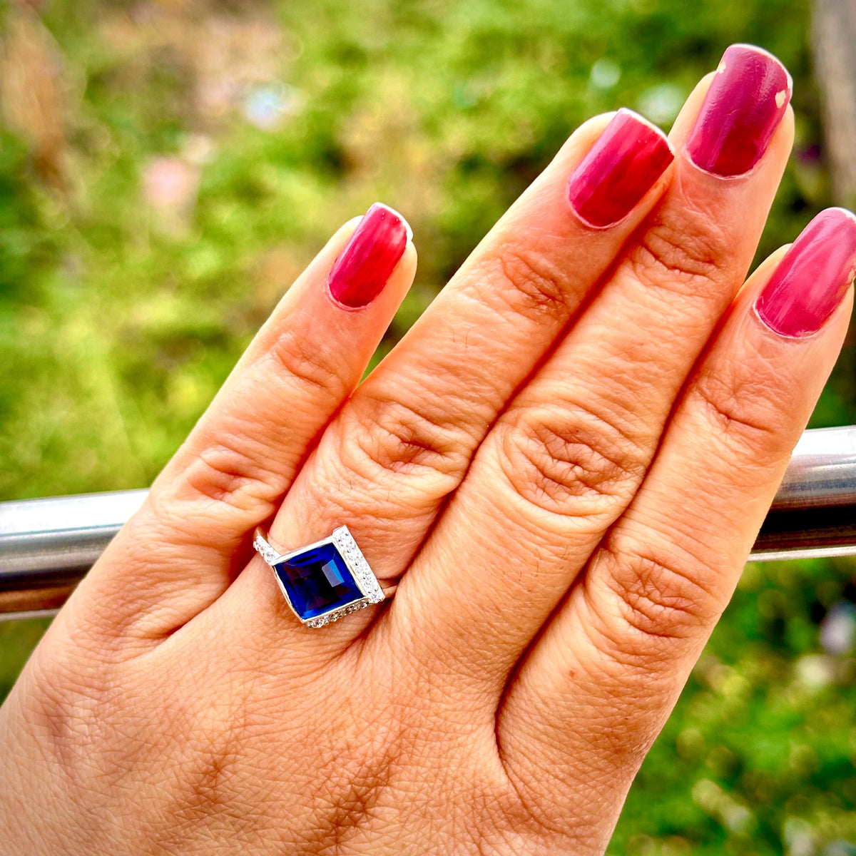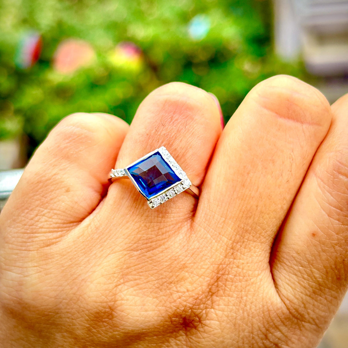 Blue Sapphire Engagement Ring 925 Sterling Silver Elongated Princess Cut East West Bezel Set Wedding Ring Bridal Anniversary Gift For Her - 3 1/4 / 925 Sterling Silver