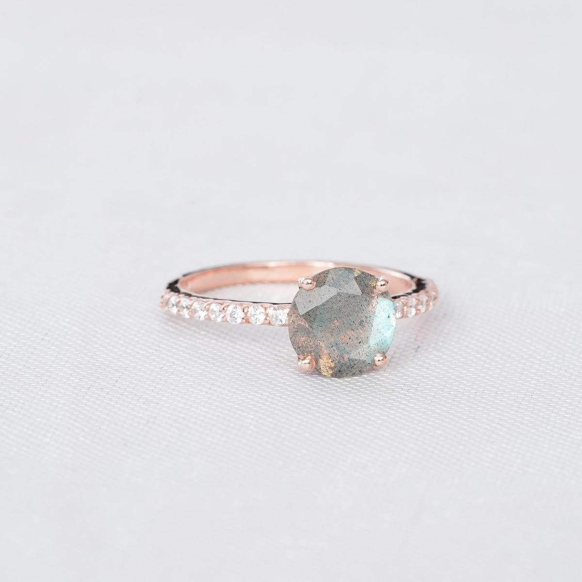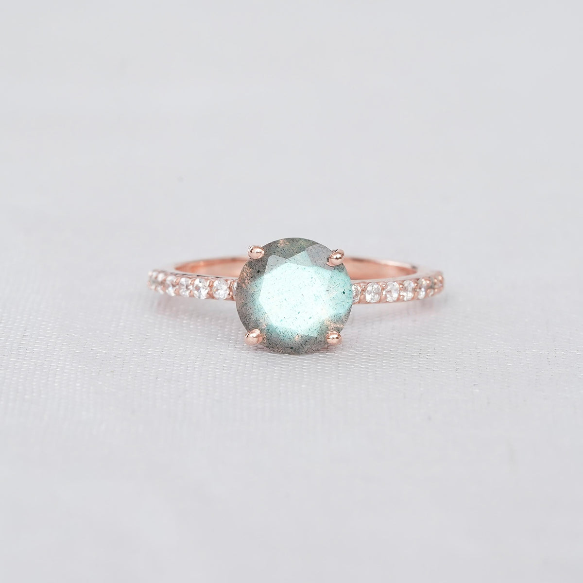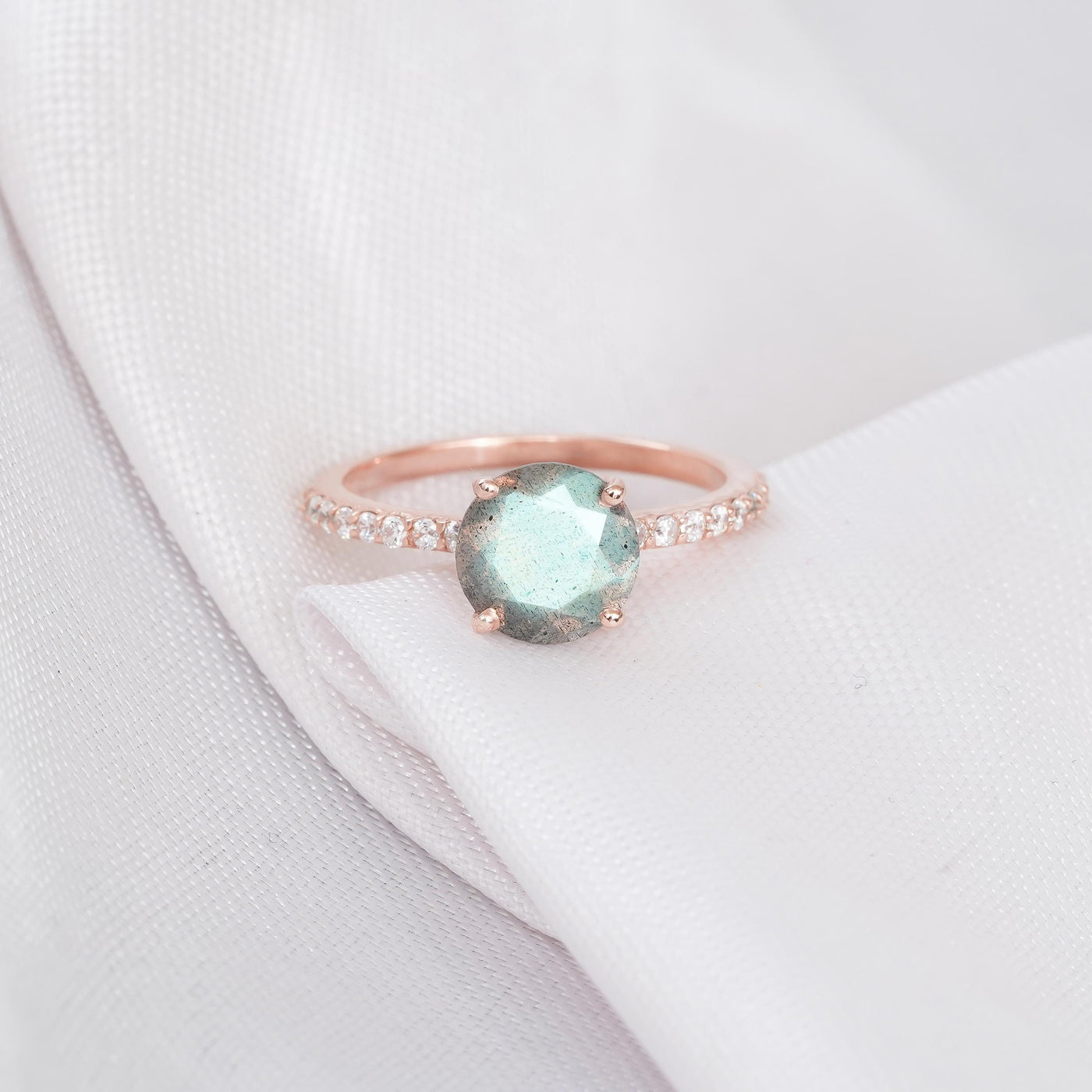 Labradorite Ring For Women 925 Sterling Silver Round Rainbow Flashy Engagement Wedding Ring Proposal Art Deco Dainty Prong Set Halo Ring - 3 1/4 / 925 Sterling Silver