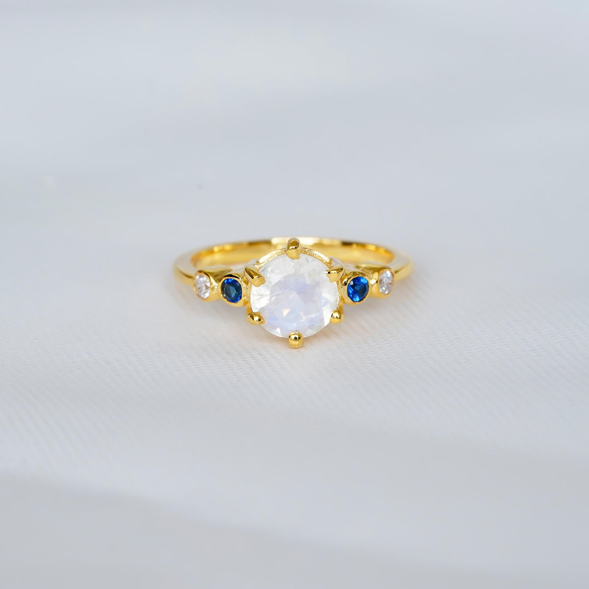 Moonstone Engagement Ring 925 Sterling Silver Round Rainbow Moonstone Wedding Ring For Women Proposal Three Stone Prong Set Solitaire Ring - 3 1/4 / 925 Sterling Silver