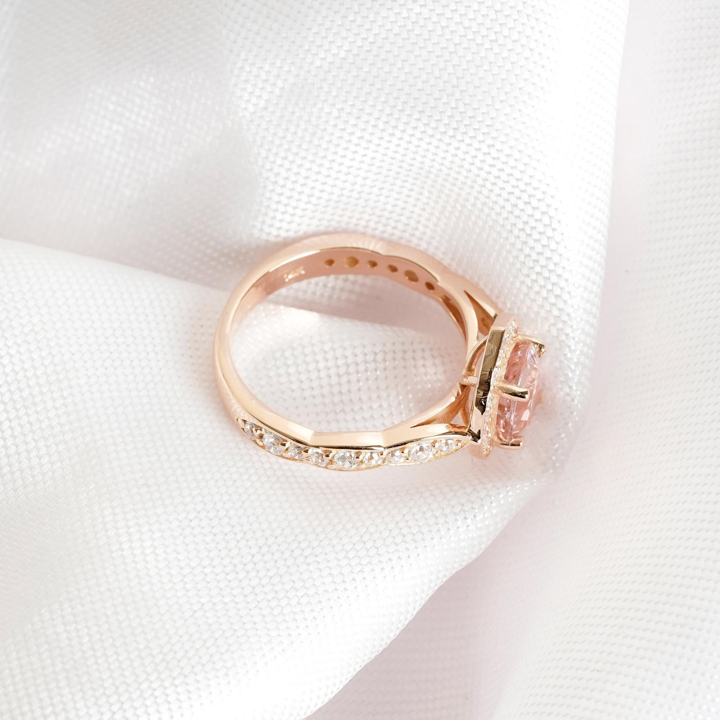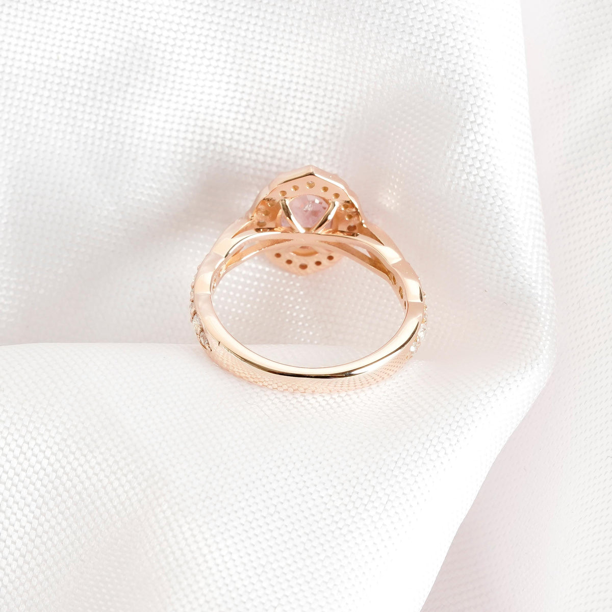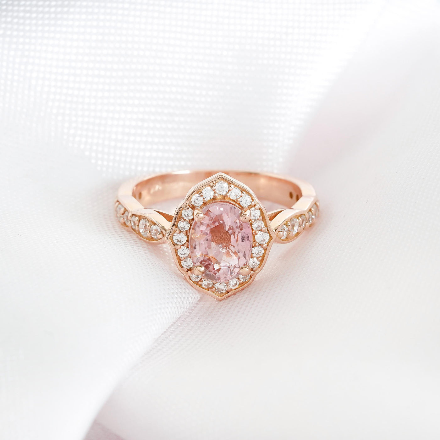 Morganite Engagement Ring 925 Sterling Silver Oval Cut Peach Morganite Wedding Ring For Women Proposal Halo Classic Milgrain Solitaire Ring