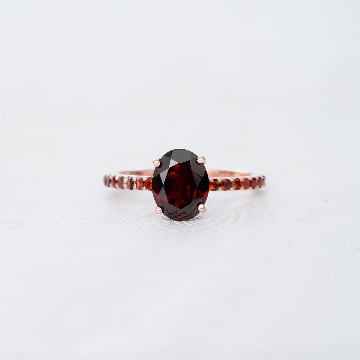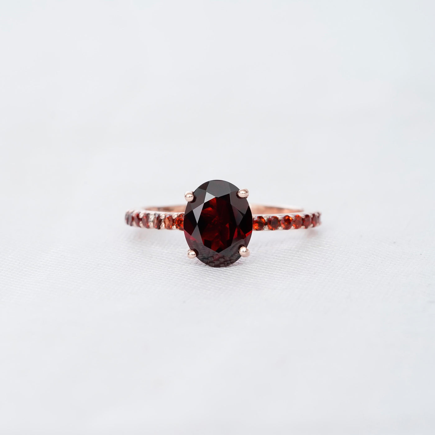 Oval Garnet Engagement Ring With Garnet Accents 925 Sterling Silver Red Garnet Wedding Ring For Women Proposal Halo Classic Solitaire Ring