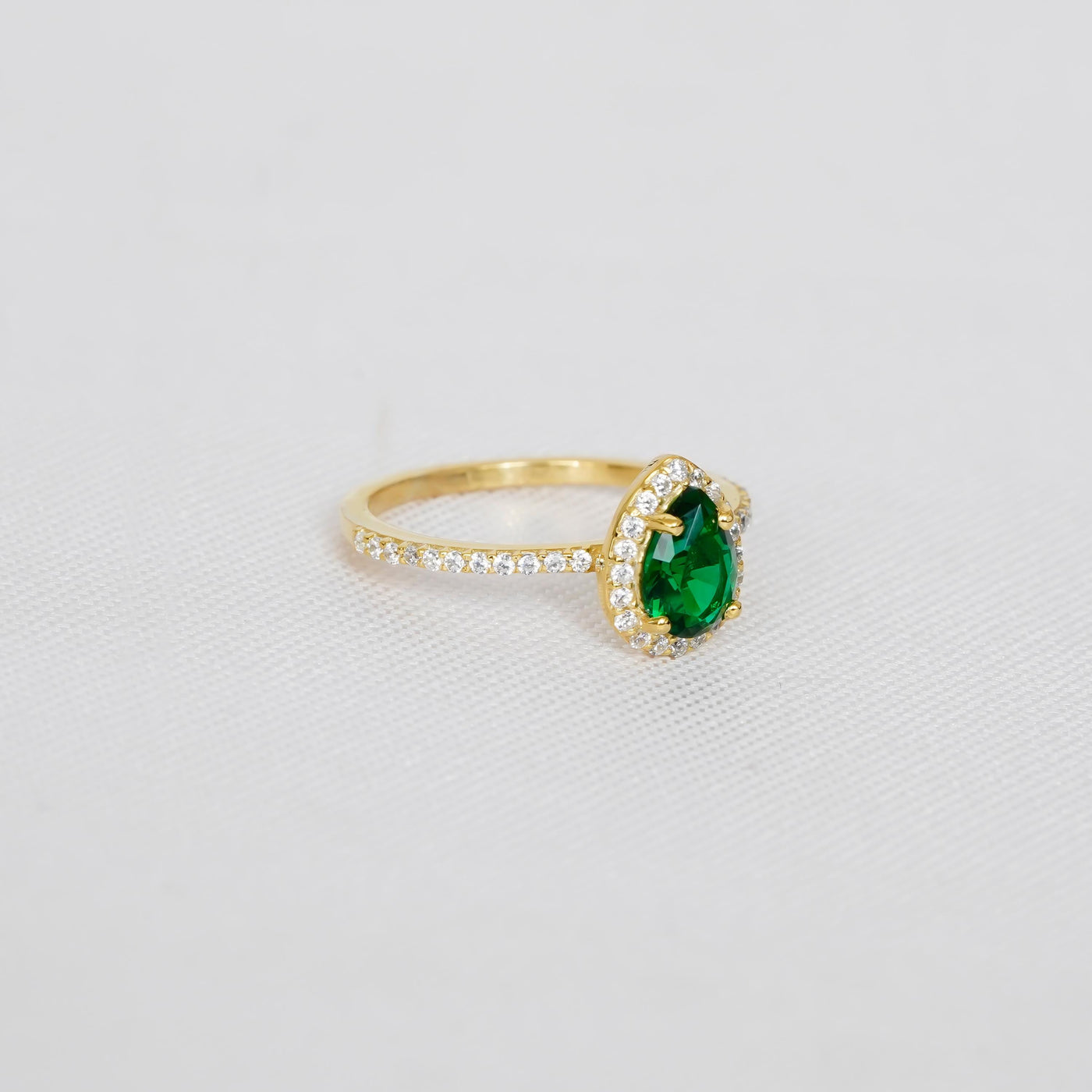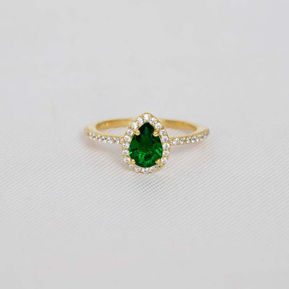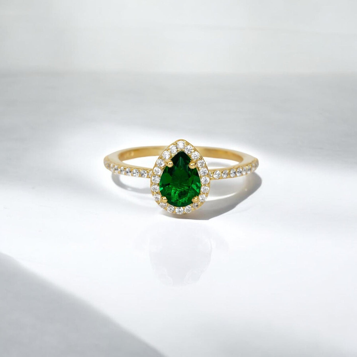 Pear Emerald Engagement Ring, 925 Sterling Silver Created Emerald Wedding Ring For Women, Teardrop Green Emerald Halo Ring, Proposal Ring - 3 1/4 / 925 Sterling Silver