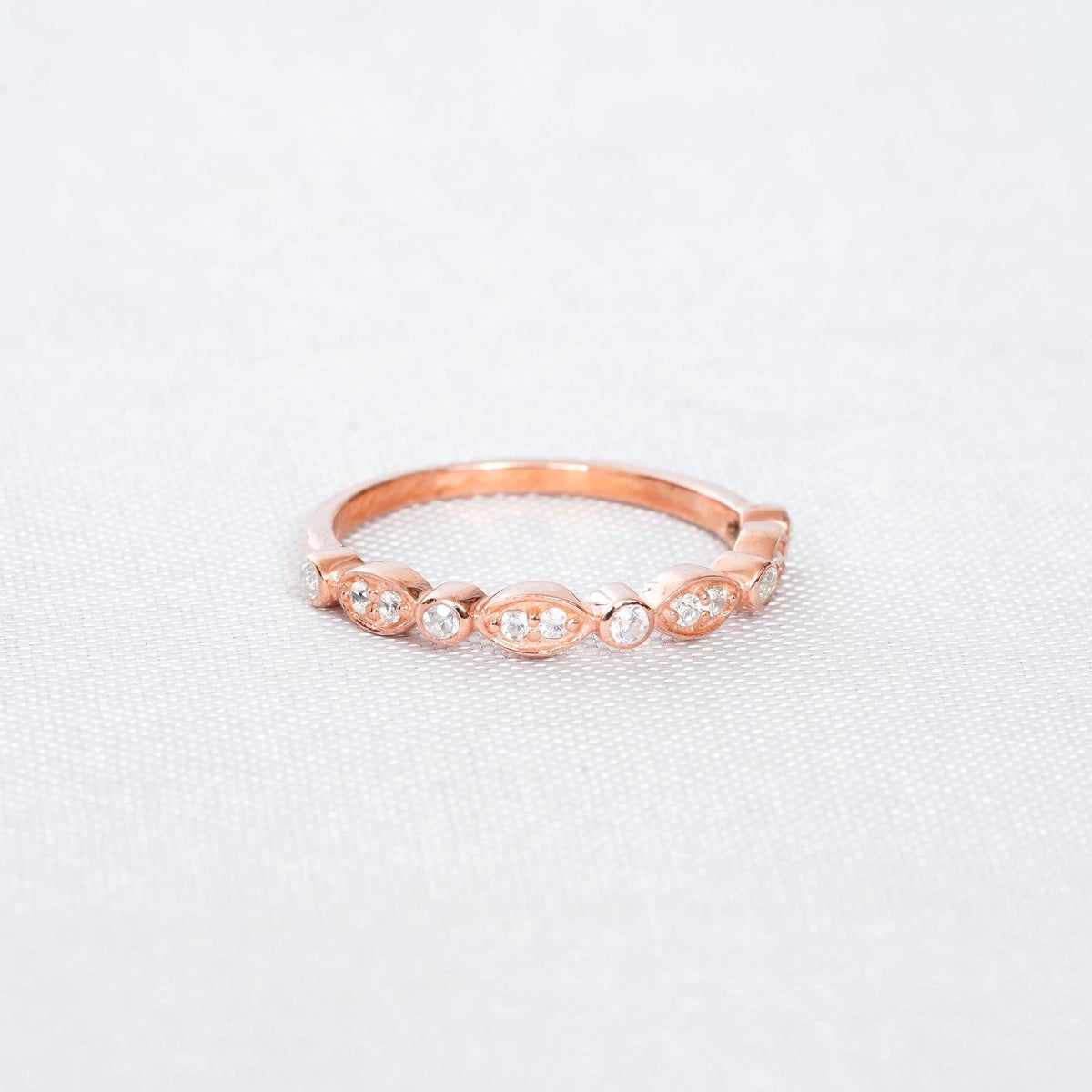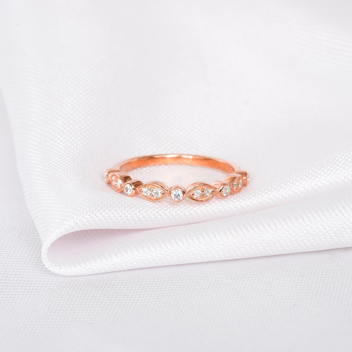 Art Deco Moissanite Wedding Band Stackable For Women 925 Sterling Silver Bridal Anniversary Gift Delicate Minimalist Milgrain Dainty Band - 3 1/4 / 925 Sterling Silver