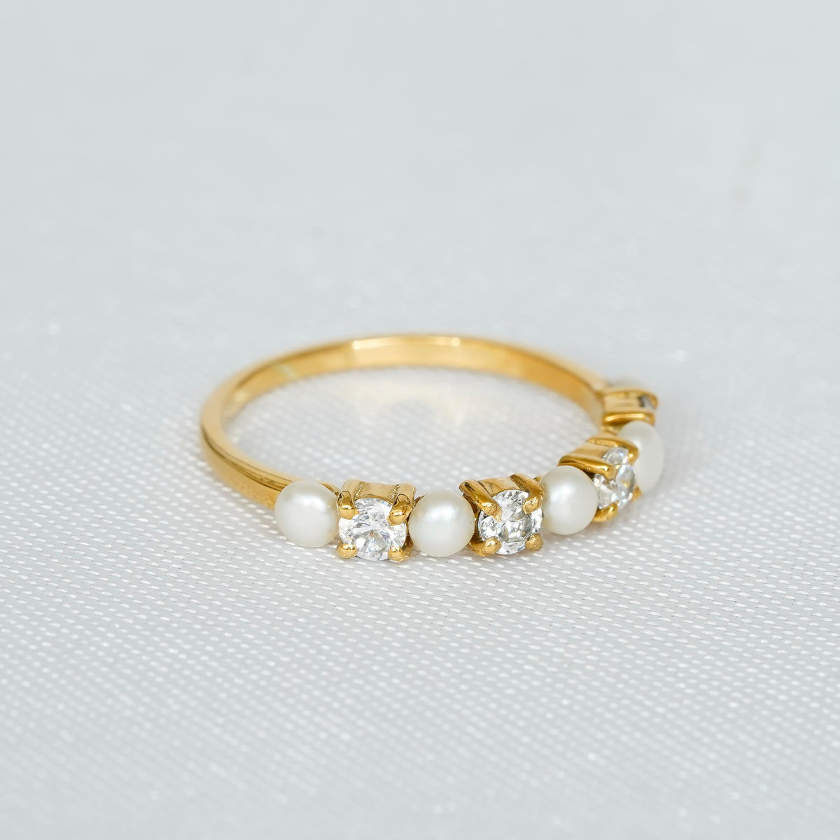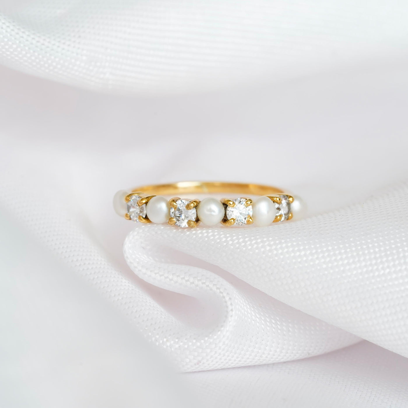 Pearl Wedding Band For Women 925 Sterling Silver Moissanites Stackable Round Cut Half Eternity Bridal Matching Anniversary Gift Dainty Band